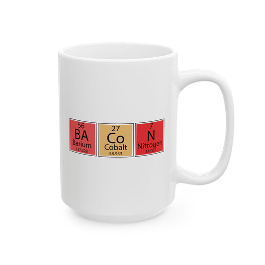 Bacon Periodic Table Mug, Chemistry Inspired Ceramic Coffee Cup, Fun Kitchen Drinkware, Gift for Foodies & Science Lovers